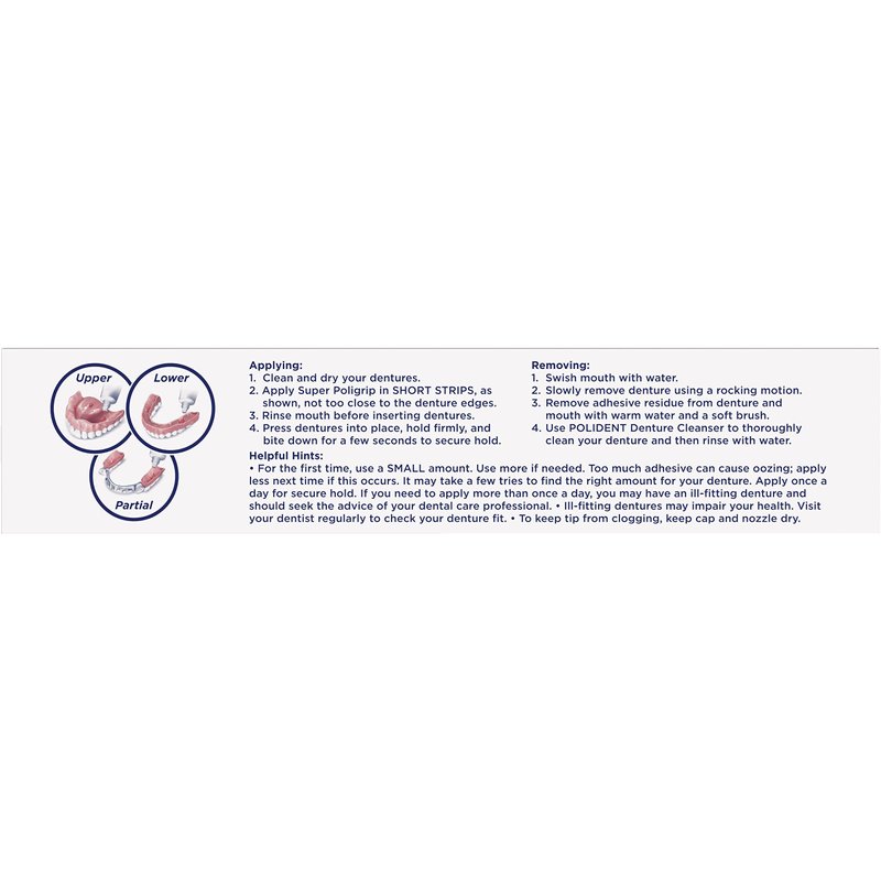 - Extra Care Super Poligrip Denture Adhesive Cream helps prevent gum irritation, sealing out up to 74 percent more food particles(1)