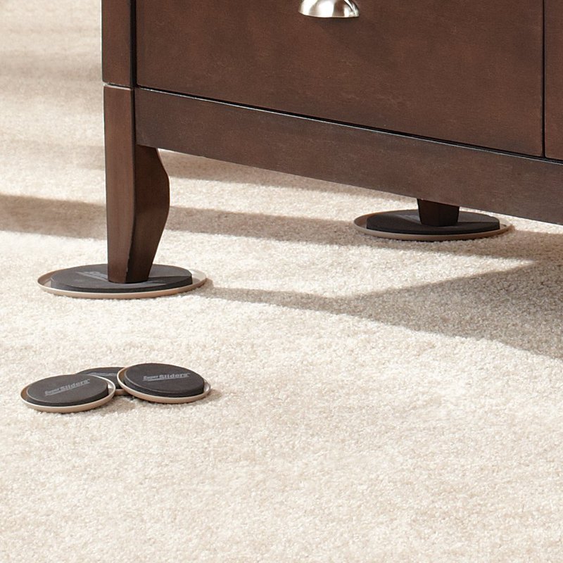 - Move Furniture Effortlessly - Our furniture sliders for carpeted surfaces move easily across the surfaces of carpets and rugs. These reusable sliders make moving, cleaning or rearranging your furniture a one-person job.