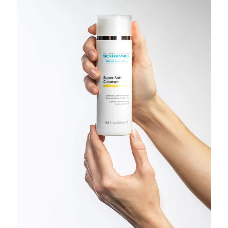 Schrammek Super Soft Cleanser is a moisturizing, mild cleanser made up of milk and natural oils to remove dirt and keep skin hydrated. Schrammek Super Soft Cleanser is very effective for removing makeup, even around the eyes, without irritation because of its neutral pH level.