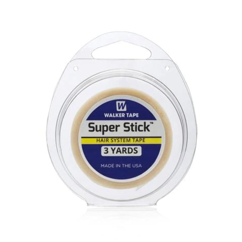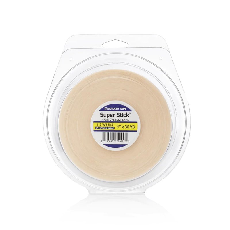 Super Stick Known for its high initial tack. Systems: Poly Dullness: Shiny Gentleness: Skin safe Residue: Medium Liner: White (tape is clear) Carrier: Stiff Hold: 1-10 days Directions ROLLS: Peel the tape from the roll and cut desired length. The adhesive side is placed towards unit. Avoid touching adhesive. Place the cut piece where desired on the hair system. Repeat as needed. When ready to apply to the scalp, peel off the remaining liner pieces. For easier application use Just-Rite Positioning Spray. Caution Store below 90°F. Test on small area before use. Keep out of reach of children. External use only. Avoid eye contact. Specs Professional Use Only Systems: Poly Dullness: Shiny Gentleness: Skin safe Residue: Medium Liner: White (tape is clear) Carrier: Stiff Hold: 1-10 days Store at room temperature, below 90°F Test on small area before use Thickness: 9 MILs Available Sizes (Rolls) 1/2" x 3 yds (108") 3/4" x 3 yds (108") 1" x 3 yds (108") 1/2" x 12 yds 3/4" x 12 yds 1" x 12 yds 1/2" x 36 yds 3/4" x 36 yds 1" x 36 yds Other Products We Recommend Preparation Bond Breaker should always be the first step in preparing for an install. Bond Breaker Shampoo breaks down the adhesives, scrubs the skin, and cleans the hair in one step. Removal C-22 is the #1 adhesive remover we make. Not only is it gentle on skin, but it works FAST. It also has a fresh scent (it’s citrus-based), and it’s easy to rinse with soap and water.