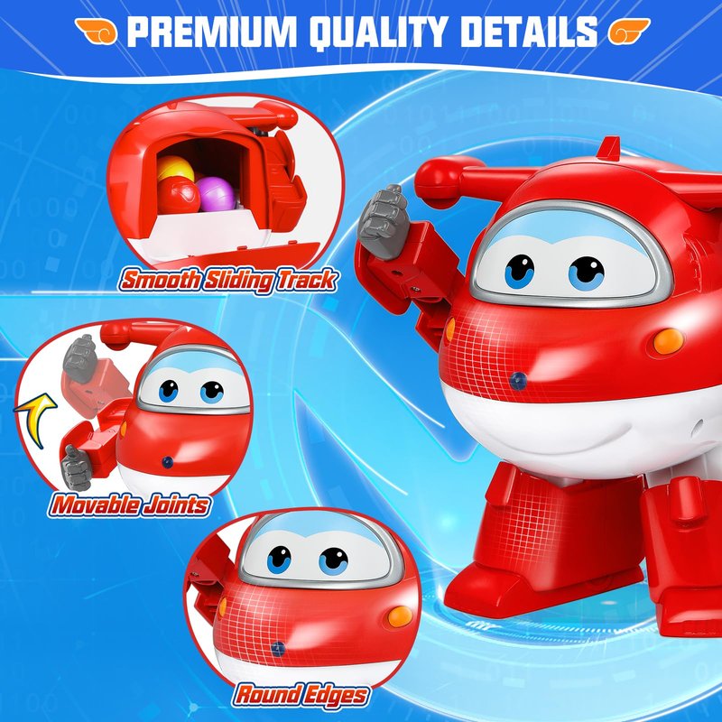 Super Wings Toy Vending Machine for Kids, Mini Gumball Machine Gashapon Machine with Colorful Balls & Role Dolls & DIY Stickers, Cause and Effect Toys for Boys Girls, Jett Lucky Ball Mixer