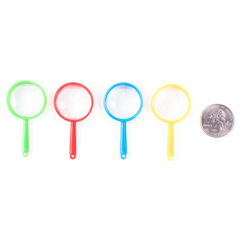 - Every set includes a fun party package of 72 tiny magnifying glasses. They are small, lightweight, and makes a great pocket toy! All magnifying glasses measure at 2" inches in length.