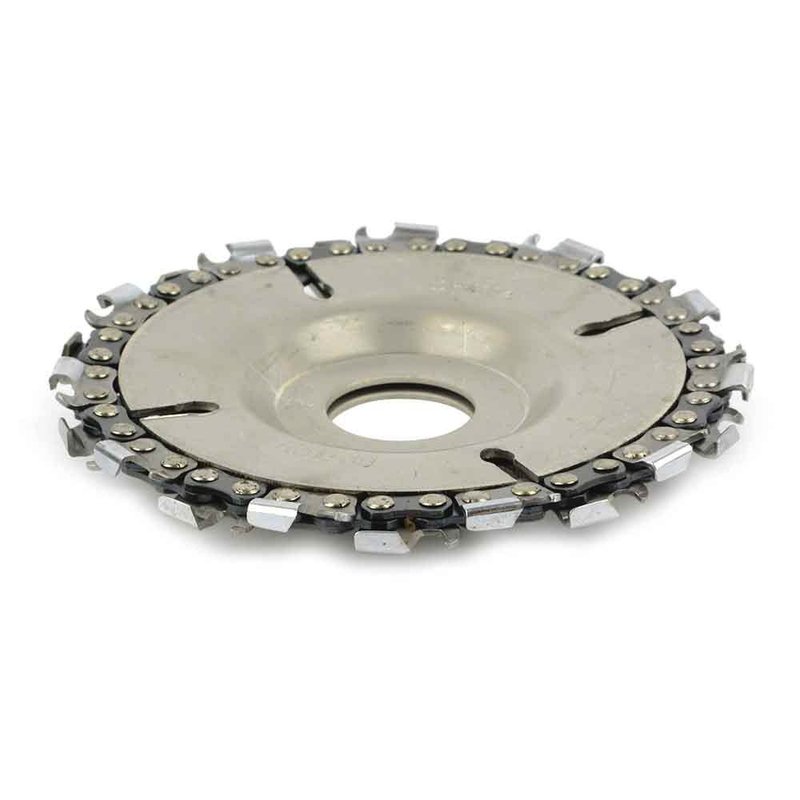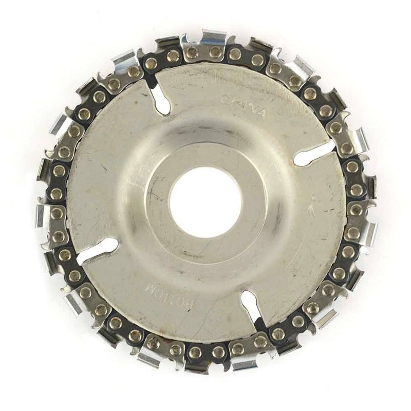 Grinder Disc Chain Saw takes extra muscle work out of cutting, carving, removing and sculpting of wood, plastics, ice and hard rubber with their speed and maneuverability. The chain saw blade is held in place between two steel plates which provides a secure grip for carving. Regardless of grain or knots the blade cuts through the material with ease to the user. Our 22 tooth design provides a smooth “finished” surface which is great for minimal sanding afterwards. Chains can be either be sharpened using a chain saw file or replaced as needed. Great for curved work, like the inside of bowls, for fast waste removal. Maximum running RPM is 14,000 RPM. Stop fighting putting that chain back between the two discs…… Standard grinder disc chain saw blades are hard to install as the chain usually slips out from between the two discs making it hard to put it back together. Superior Steel has solved this problem with a very easy solution -- by using a small amount of clear caulking gel between the two discs that holds the discs together from separating during the installation process. Which makes the installation of our grinder disc a breeze.