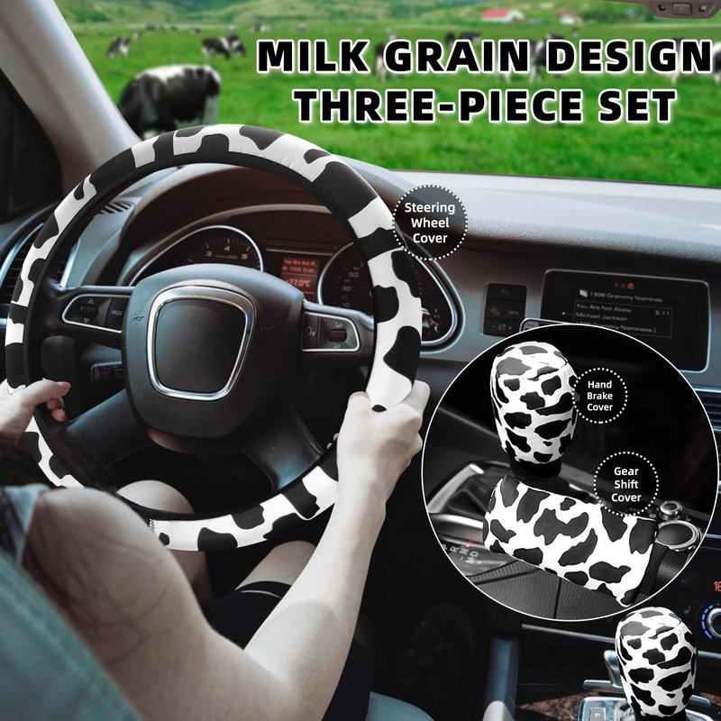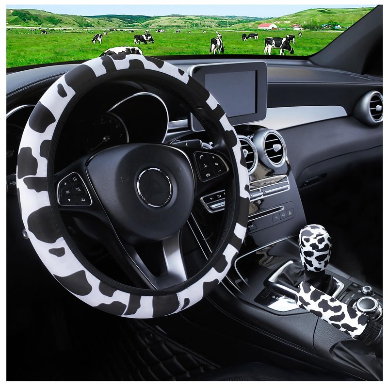 - �Cute Appearance:This lovely Car Interior accessories set with milk cow print design, has steering wheel cover,Shift & Hand Brake Covers. Make the inside of your car look more delicate.