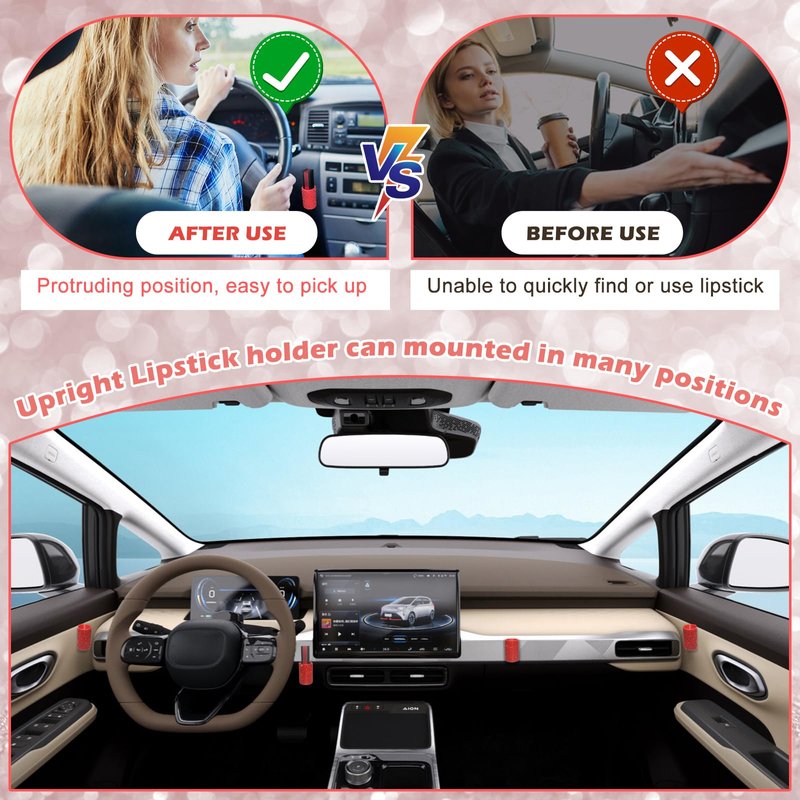 - 🚗Application:The lip balm holder suitable for all kinds of cars, it can be used in any position for your car. Size is measures 1.9 inches by 1.15 inch,Holds most lip balms and lipsticks, which meeting the needs of women and young people.