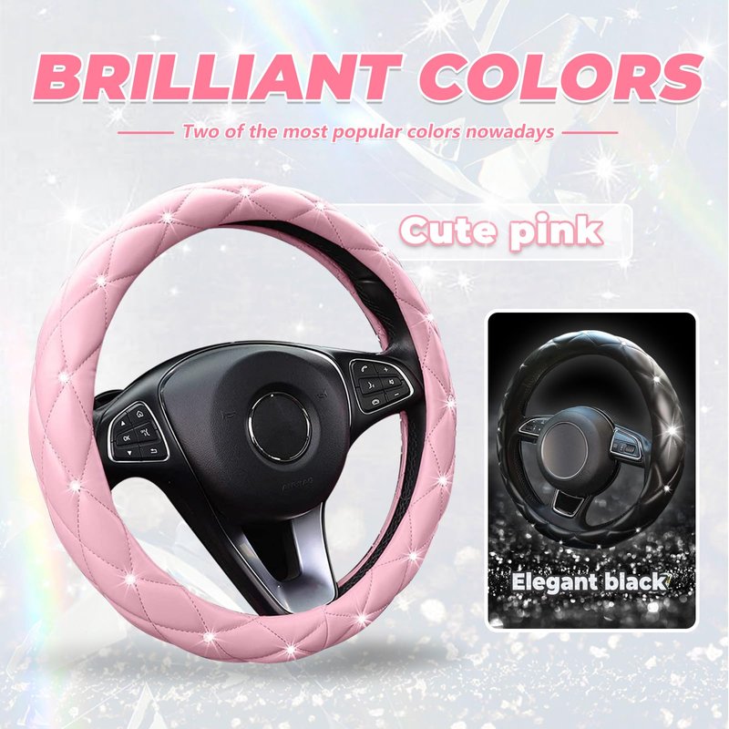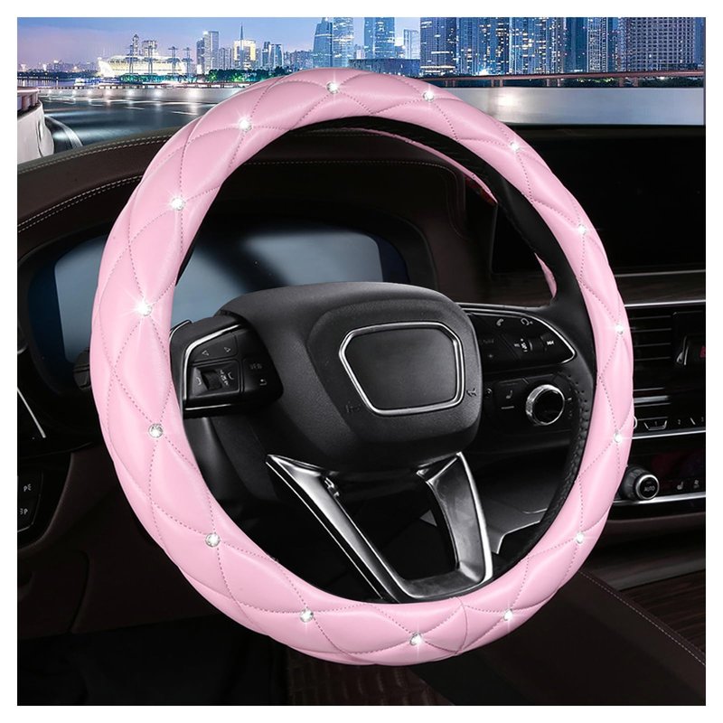 The pink steering wheel cover made of Soft leather with bling sparkling rhinestones,comfortable, wear-resistant, slip-resistant and breathable. Giving you both hand feeling and visual experience, and makes your driving experience more superior.