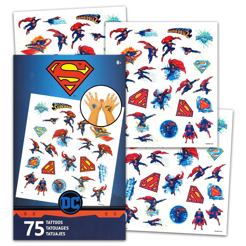 - Featuring your favorite Justice League character -- Superman! Superman tattoo pack contains 75 temporary tattoos.