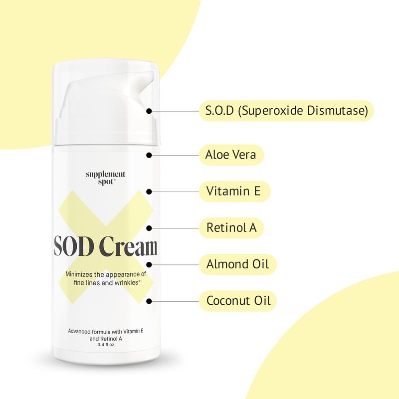- Superoxide Dismutase Cream: S.O.D. is the most powerful enzyme produced by our body to keep our skin smooth and supple. All the ingredients in this S.O.D. superoxide dismutase supplement facial cream are all-natural and paraben-free.