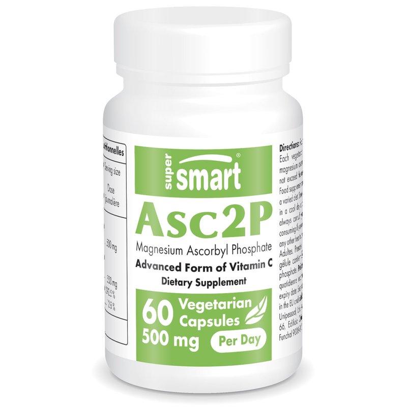 Supersmart - Asc2P High Potency Vitamin C 500mg per Day (Advanced Vitamin C Form) - Magnesium Ascorbyl Phosphate Supplement | Non-GMO & Gluten Free - 60 Vegetarian Capsules
