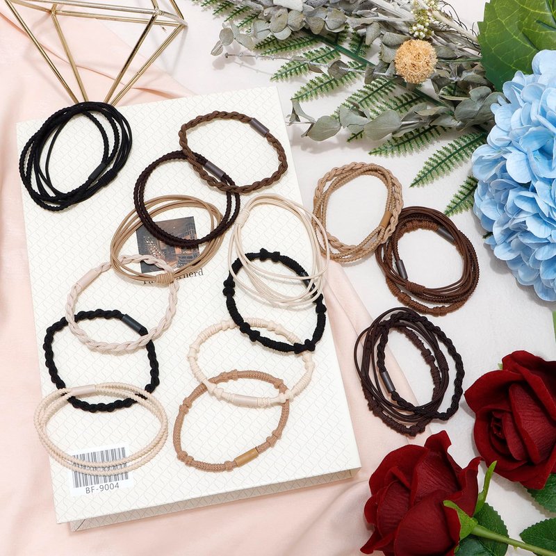 - ❤Package Include: Comes with 20 pieces of hair ties. This set has 4 styles - a thin 4-strand style; a spiraled 2-strand style, a braided/twisted 2-strand style, and a larger single strand that has alternating textures on it. The joint of each band is covered with a corresponding piece of plastic to hide the seam.