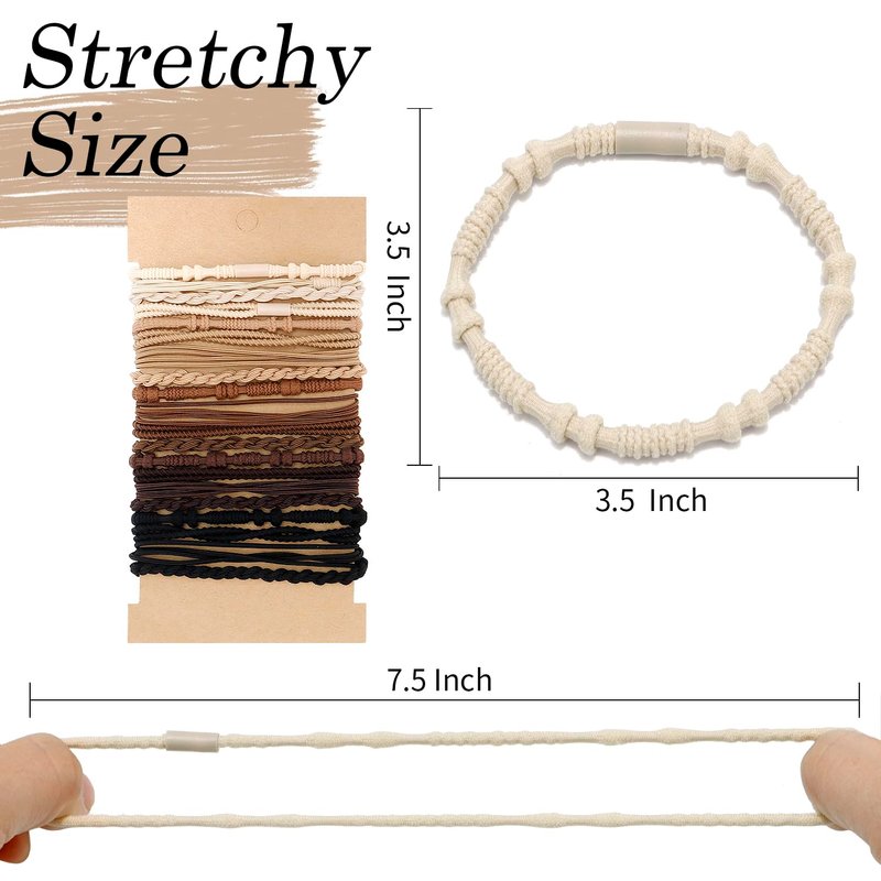 SuPoo 20 Pcs Bracelet Hair Ties Boho Hair Elastics Blonde Hair Rubber Bands Natural Braided Nylon Hair Ties for Thick Hair or Thin Hair Ponytail Holders Brown Hair Ties No Damage Hair Accessories