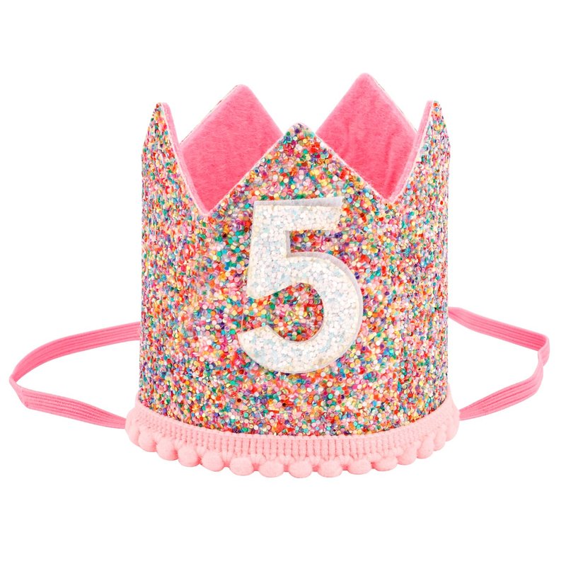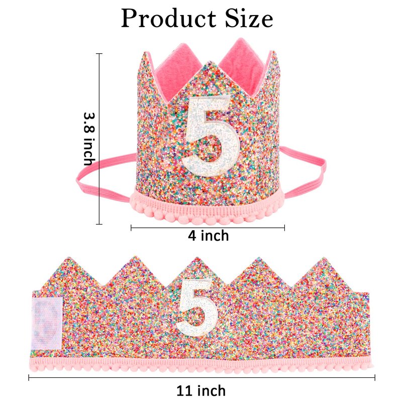 SuPoo Girls Princess Tiara with Elastic Band - Glitter Birthday Crown, Happy Birthday Party Cap, 5 Year Old Decorations Supplies