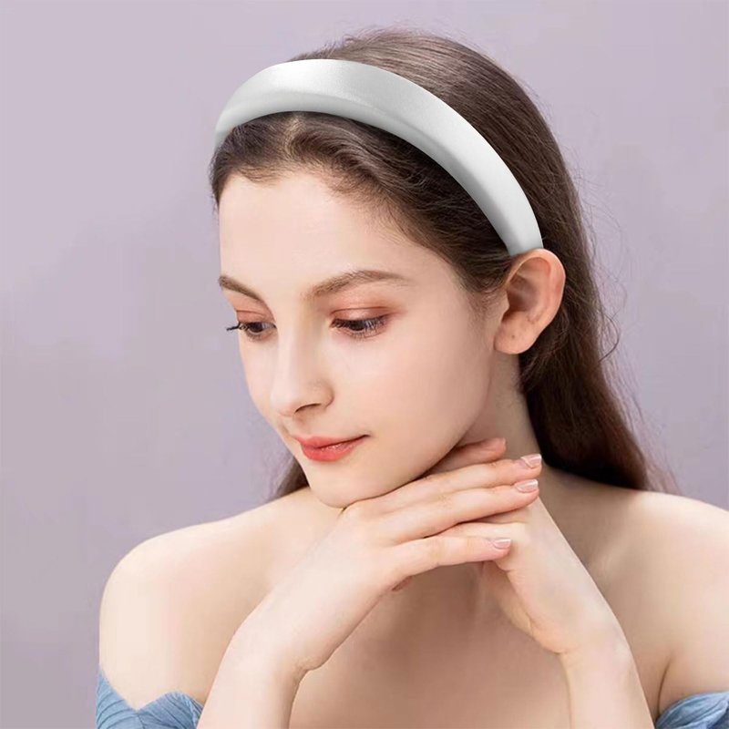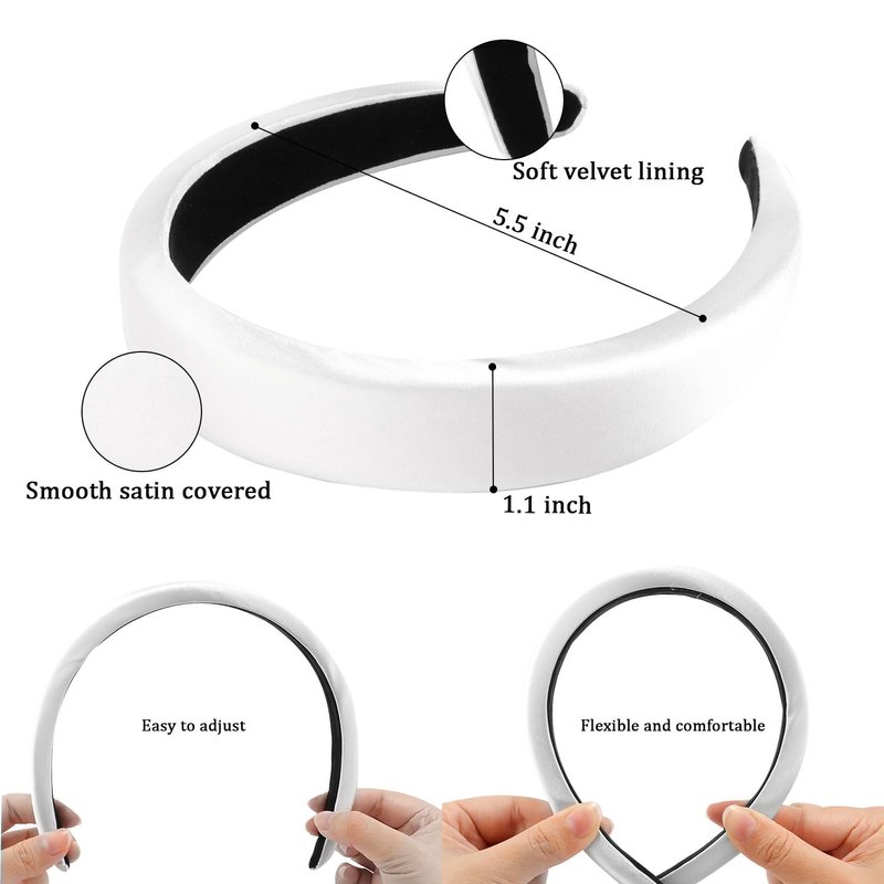 SuPoo Padded Headbands White Headbands for Women Girls Preppy Soft Thick Hairbands Wide Head Band Non Slip Fashion Satin Silky Hair Band Hoop Trendy Hair Accessories diademas para mujer de moda