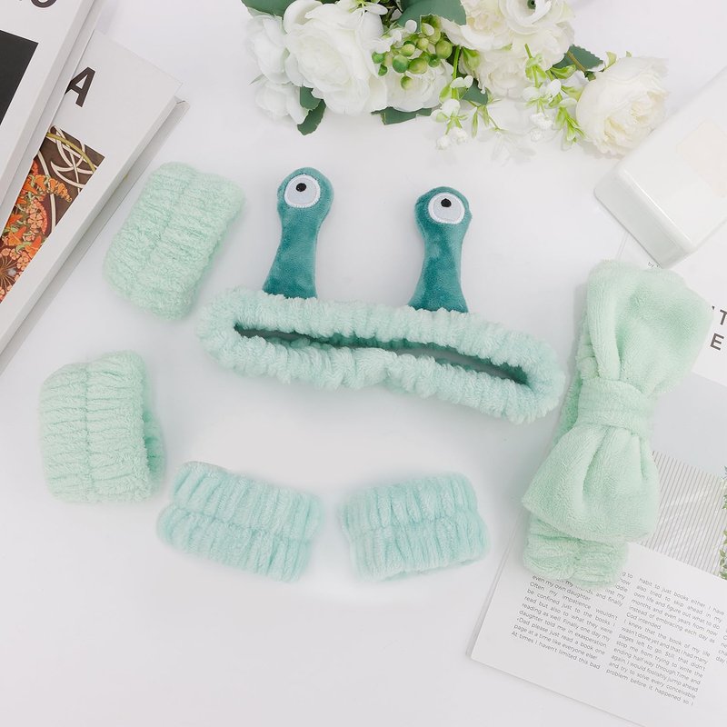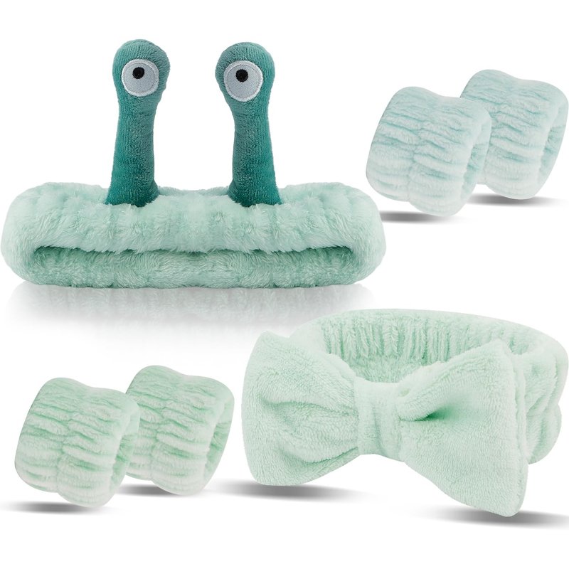 SuPoo Snail Spa Headbands for Washing Face Puffy Face Wash Headband and Wristband Funny Skincare Wrist Bands Makeup Headband Preppy Teen Girl Trendy Stuff Hair Accessories
