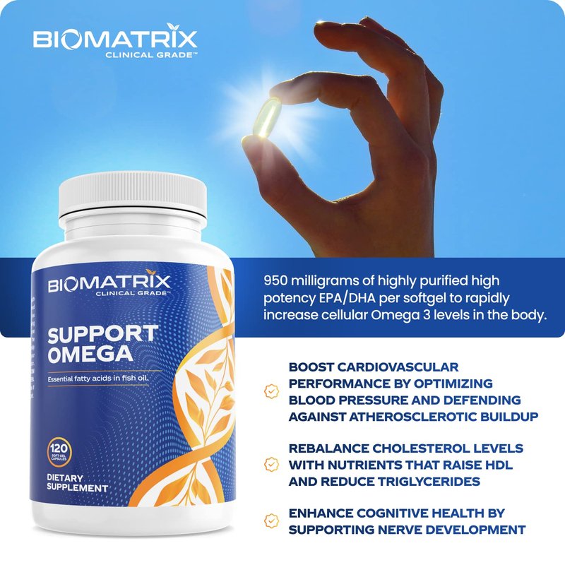 Support Omega (120 Gel Capsules) Omega 3 Fish Oil Supplement - Cardiovascular, Musculoskeletal Support