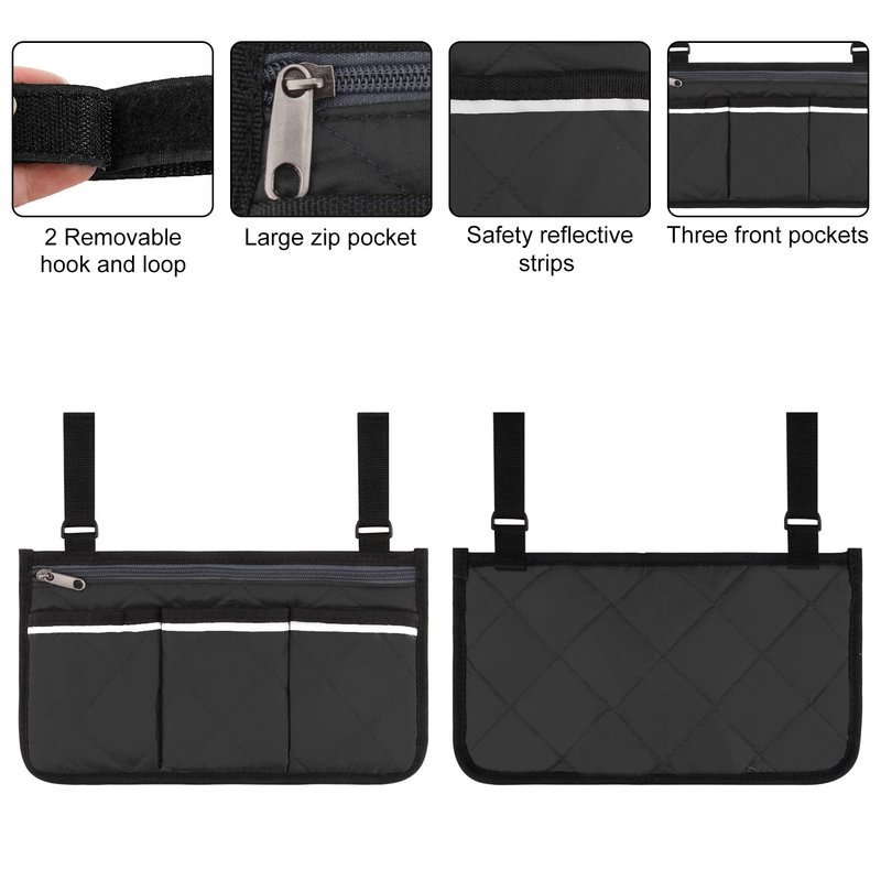 - Overall Dimension: 12.6 x 7 inches; great for organizing and holding your daily essential items; easily fits for most sizes and styles of wheelchairs, walkers, transport chairs, scooters, strollers, bedside rails with side bar