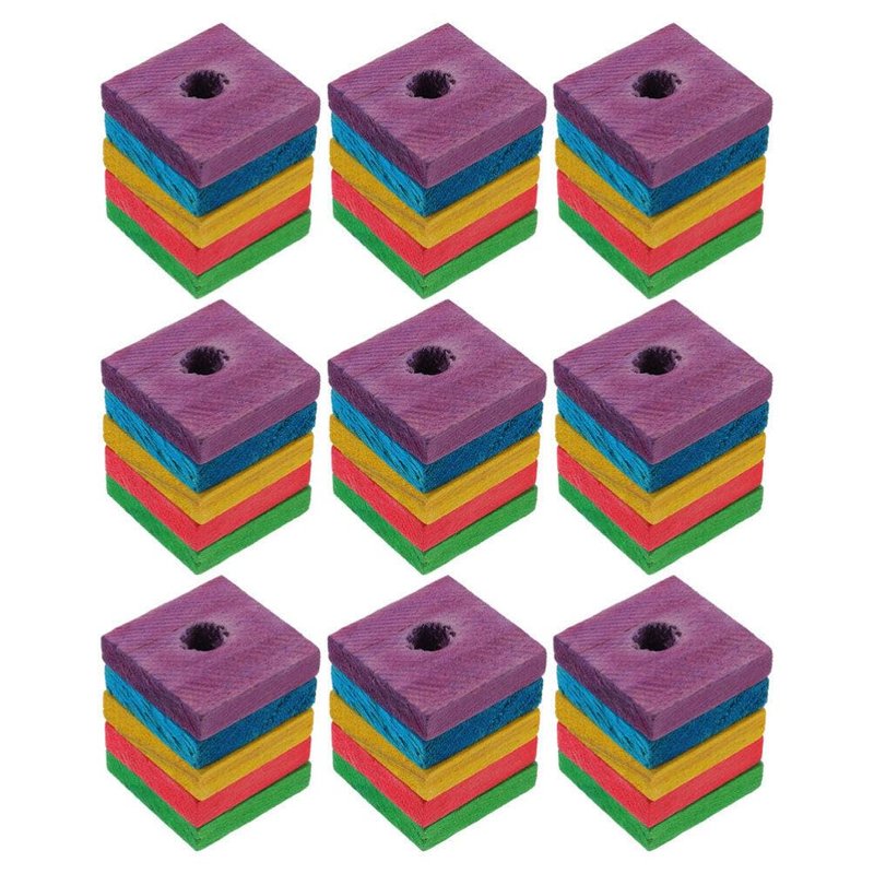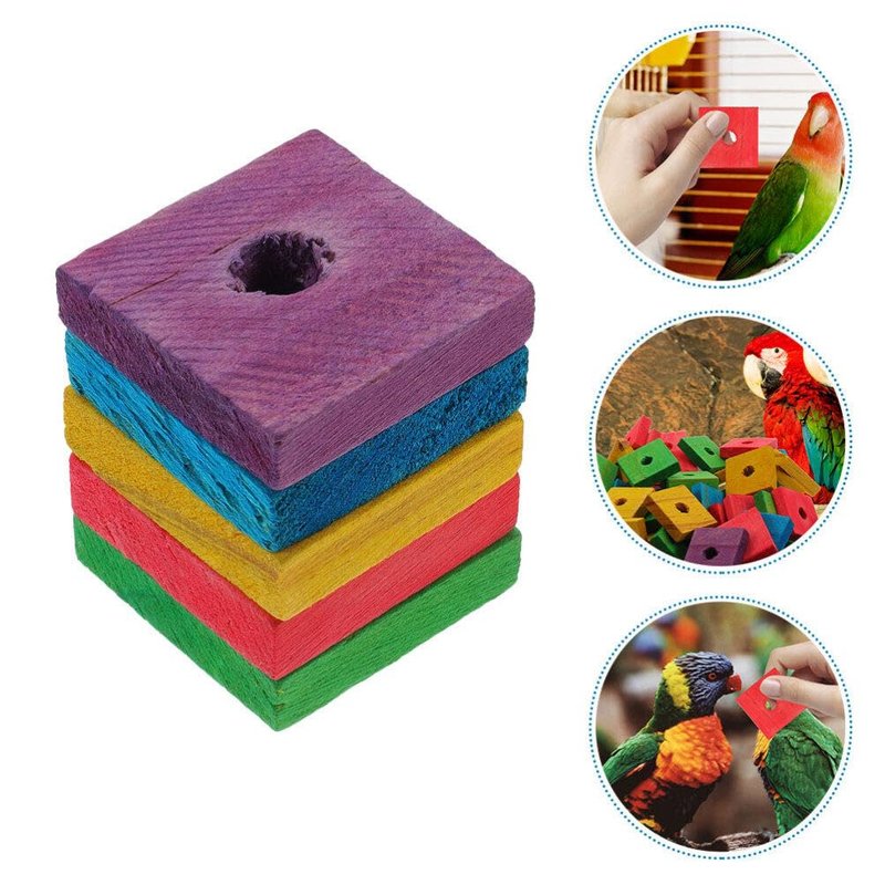 SUPVOX 50pcs Wooden Blocks Bird Chewing Toy, DIY Bird Chewing Toys Colorful Square Wood Pieces Beak Trim Parrot Foot Craft Cage Part Toy Mini Wood Chip Charms