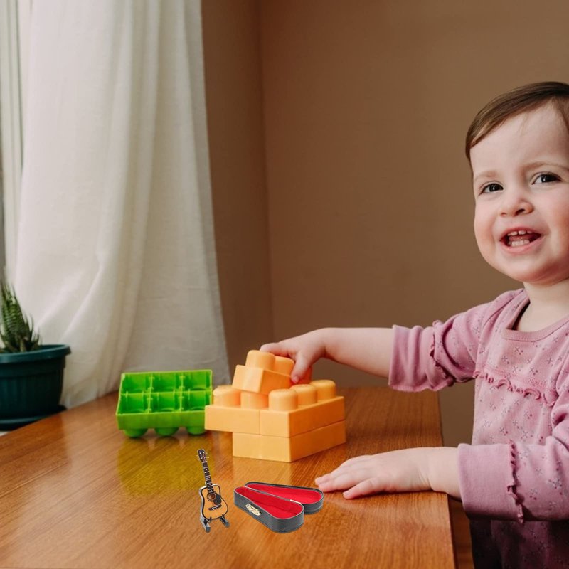 - Miniature Wooden Guitar Model Dollhouse Musical Instrument Display with Stand Support and Case Dollhouse Accessories Small Craft Ornaments Adorable Guitar Design Make It More Attractive and Will a Pleasant Atmosphere to Your Desktop Ornament