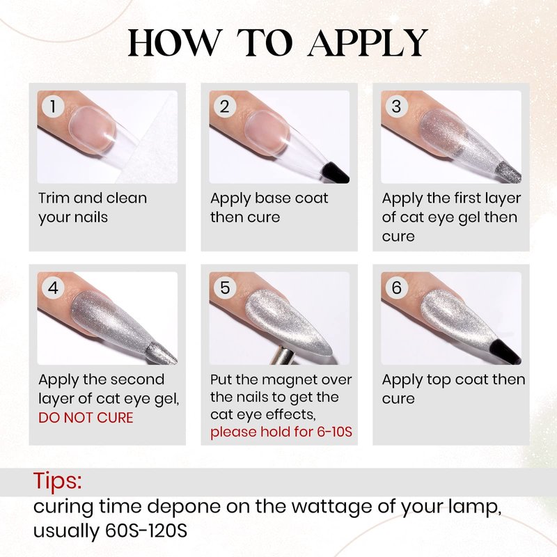 - Charming Effect: The Cat Eye Nail Gel Polish can match any color gel for the base color gel you like. This Cat Eye Nail allows you to have many kinds of charming effects and attract attention on any occasions