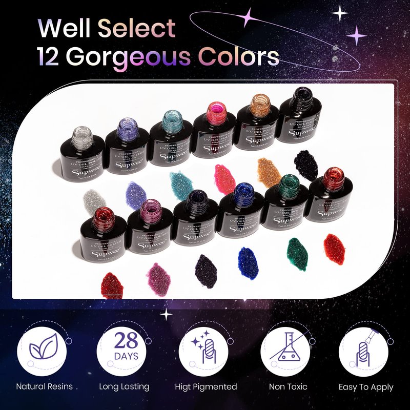 - ❤【Warm Tips】★Reflective effects must be under strong light or turn on the flash when taking photo ★Supwee Gel Polish requires UV lamp Cure ★There may be color differences due to different monitor