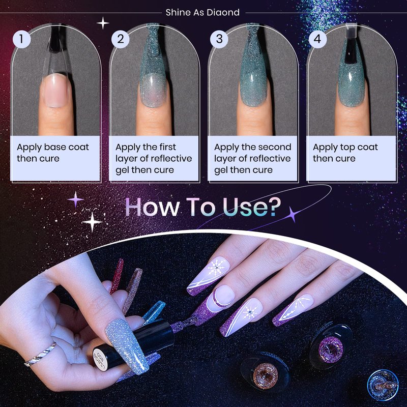 - ❤【Reflective Diamond Gel Polish】You will get 12 different colors reflective gel polish, 7ml(0.24) each bottle, comes with a luxurious box, it's the best gift for all holidays, such as Christmas, Mother's Day, and Valentine's Day