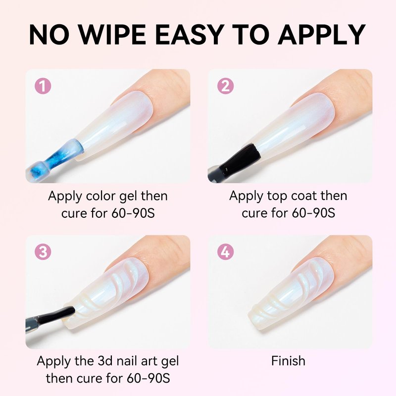 - Multi-Purpose 3D Nail Art Gel: This 3D Nail Art Gel allows for a high level of creativity and customization in nail designs and is available for various nail patterns and designs. Easy to mix with different colors and apply with chrome powder, sequins, and nail polish