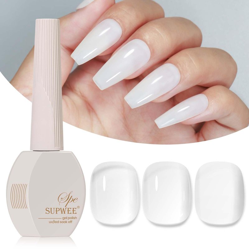 SUPWEE Milky White Jelly Gel Nail Polish, 15ml Transparent Nude Jelly Nail Polish Glass Neutral Sheer Color Soak Off LED UV Gel for Nail Salon&Home DIY Manicure