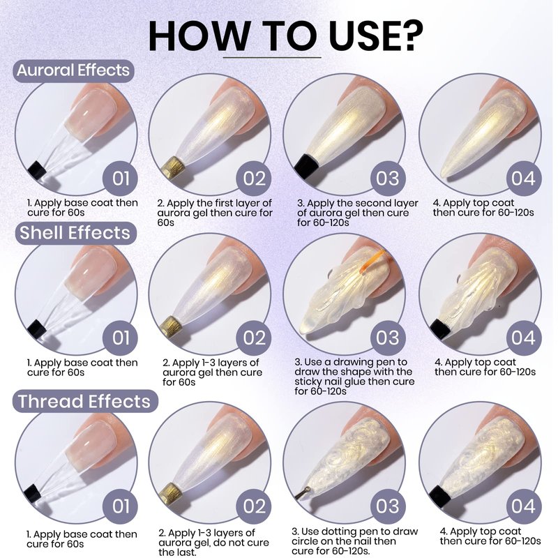 - ❤【Buy 1 For More Effects】This Pearl Shell Gel Nail Polish is available for any various shape, such as swirl, slash, curve ,etc. combinate with shimmer glitter to show your nails more vibrant,let's discover more possibilities for it