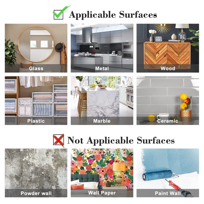 - Applicable Surfaces: The clear adhesive points can be pasted and removable on most of the smooth, clean, dry surfaces, such as ceramic, tile wall, metal, glass, paper, clothing, wood, plastic, resin surface, etc. They can replace nails, pins, pushpins, tapes, staples and so on. In order to keep the stickiness better, the dots are not suitable for liquid environment. Please make the surface clean and dry before pasting.