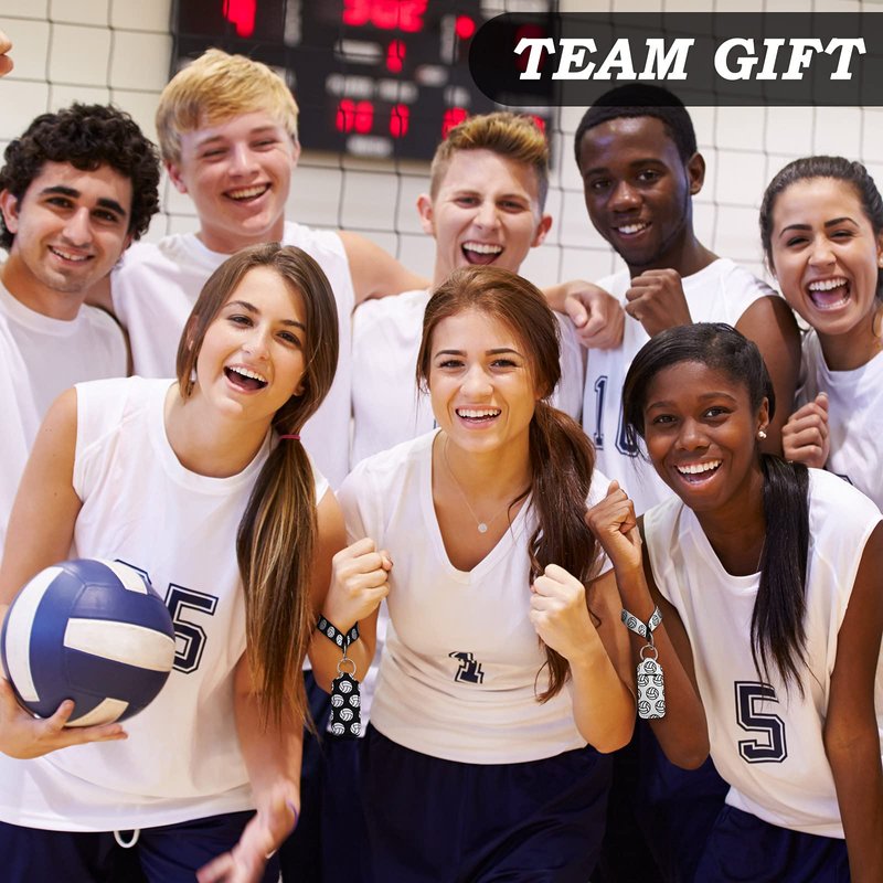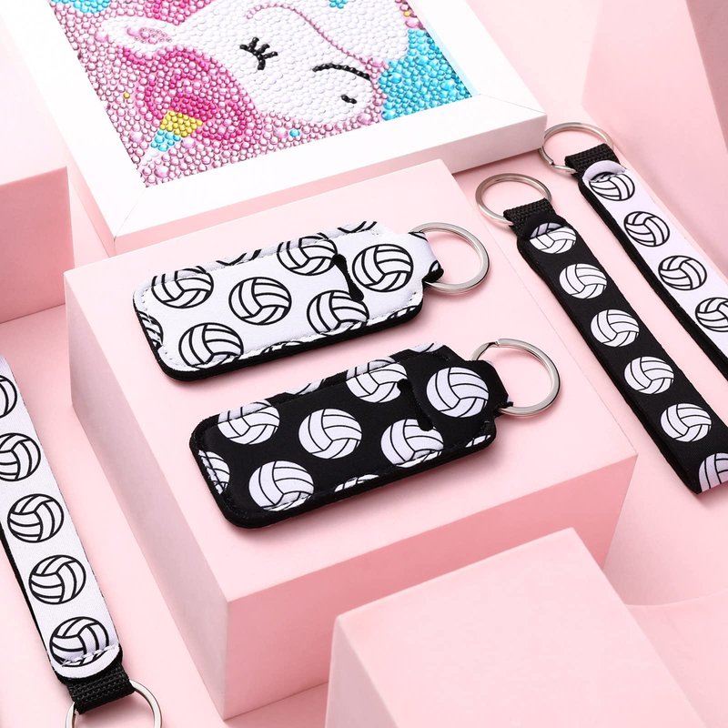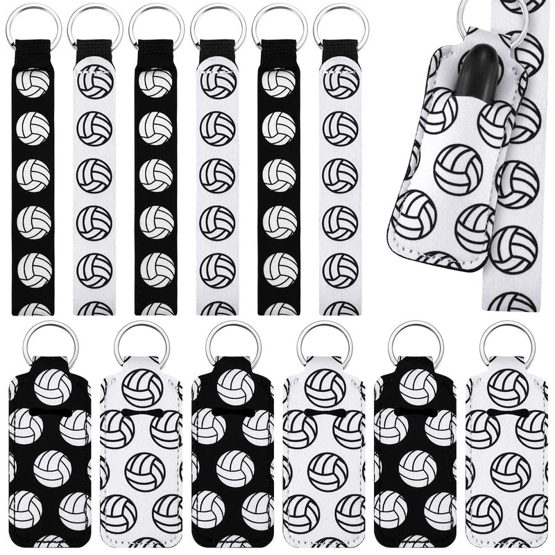 Sureio 20 Pcs Volleyball Lipstick Holder Volleyball Keychains Bulk Volleyball Gifts for Team Volleyball Portable Wristlet Keychain Lanyard for Lipstick(Volleyball,White, Black)