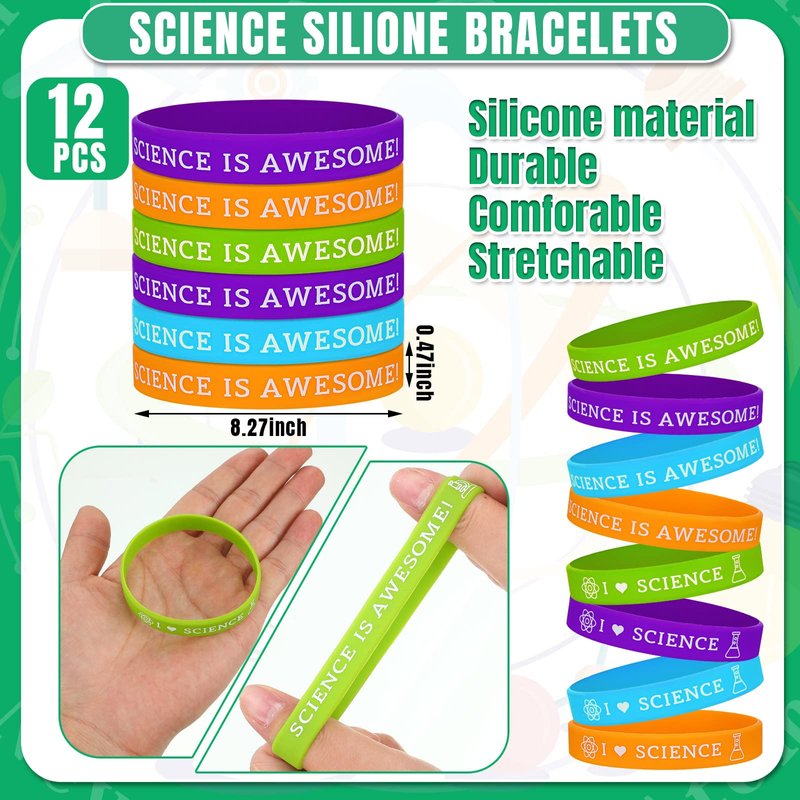 Features: The scientific drawstring bags can store scientific bracelets, candies, biscuits, snacks or other small objects. The scientific silicone bracelets and scientific buttons pins are able to be as ornaments for daily wear, which are cute scientific decorations. Specifications: Material: plastic and metal, silicone, paper, polyester fabricColor: as shown in the pictureSize: as shown in the picturePackage includes: 12 x Scientific drawstring bags 12 x Scientific wristbands12 x Scientific buttons pins50 x Scientific stickersNotes: Manual measurement, please allow slight errors on size. The color may exist a slight difference due to different screen displays. The words of the products are for decorative purpose only, not applied as trademark.