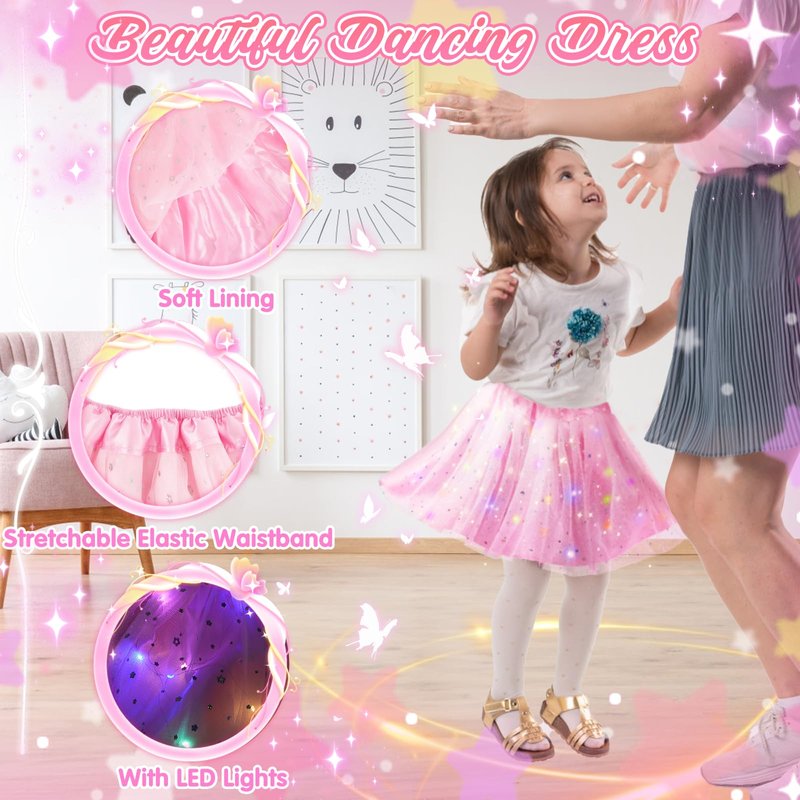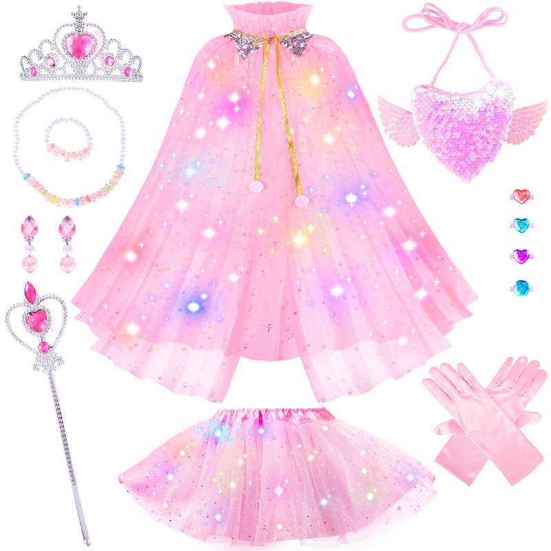 - Enchanting Light-Up Princess Dress Turns Your Girl's Dreams into Reality --- Surelect toddler princess dress-up cape and tutu skirt feature shimmering sequins that sparkle with every twirl, enhancing her charm. Detachable LED light strings offer three lighting modes, allowing little girls to shine brightly at night and create a magical atmosphere. Transform playtime into an enchanting adventure where every girl feels like a true princess. (Warm Tip: An extra LED light is included as a backup)