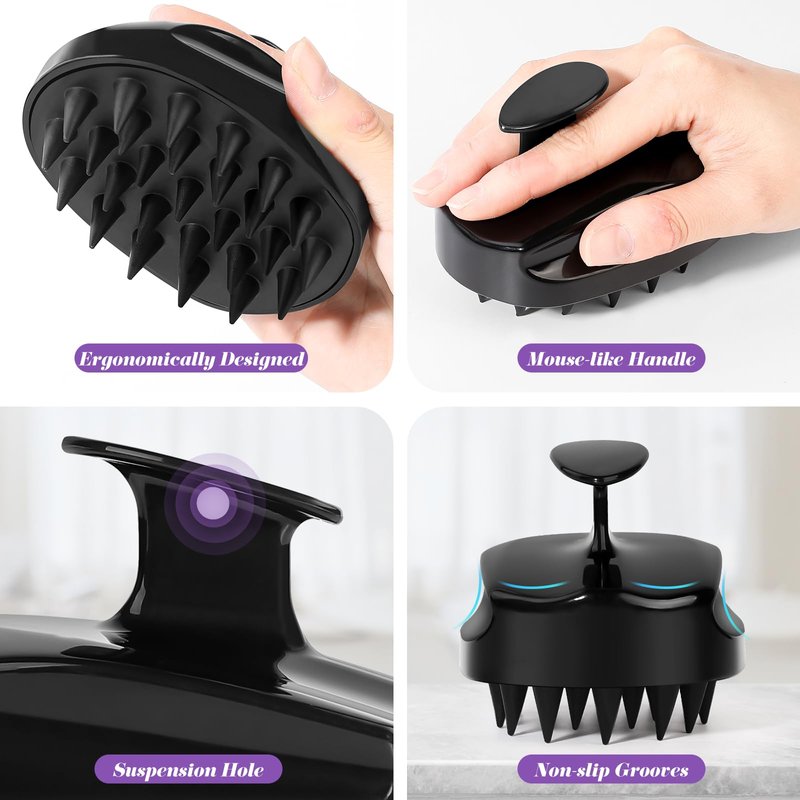 Suroseate Scalp Massager Shampoo Brush with Soft Silicone Bristles for Hair Growth, Scalp Scrubber Head Massager for Dandruff Removal, Shower Hair Brush for Women Men Kids Wet Dry Hair, Black