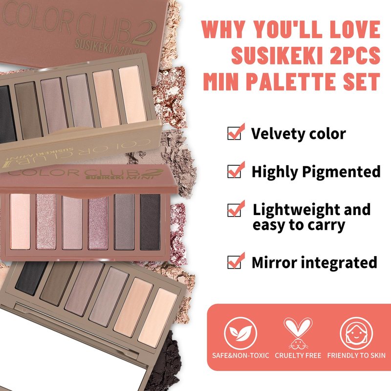 - 【Professional Neutral Tones】Elevate your eye makeup game with SUSIKEKI 2pcs Mini Naked Eyeshadow Palette Set. These carefully curated 2 pallets features 12 stunning shades, a range of cool and warm tones, from soft matte taupes & brown to shimmer pink & rosy. Create versatile looks with ease, perfect for both makeup beginners and professionals.