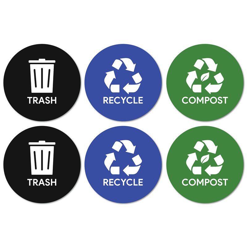 - SET OF 6 | 2 each of Compost, Trash, and Recycling. Put a sticker on the recycle bin and a matching sticker on the wall to keep the dumpster area organized and consistent