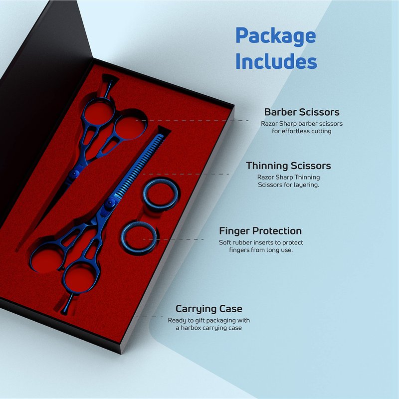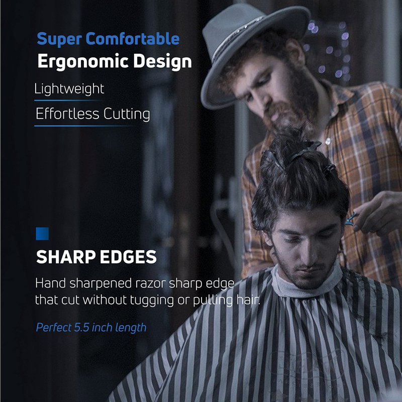 - ⭐ ACTIVE COLLABORATION WITH BARBERS: By collaborating with barbers & hairstylists, we've developed innovative designs and material selections focused on precision, sharpness, cutting efficiency, and minimizing hand & wrist strain in users. We are present at major beauty shows across America & Europe (UK) and gather valuable feedback from professionals that fuels our commitment to creating the most effective & user-friendly hair thinning scissors.