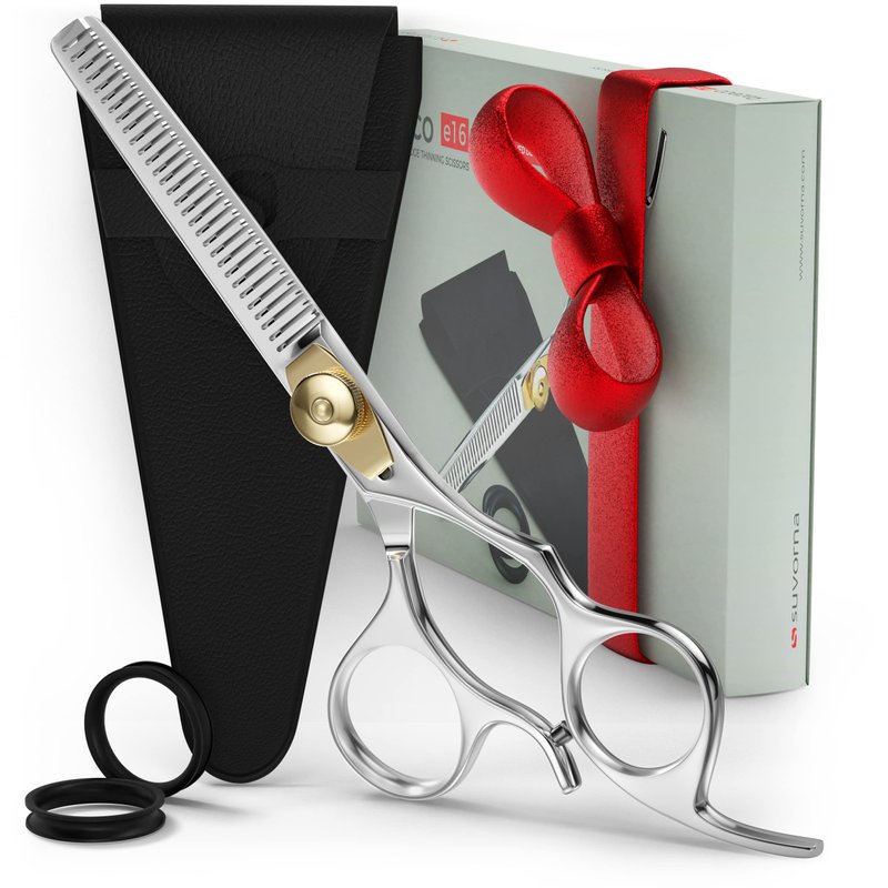 - 👩🏻💼 AMERICAN FEMALE-OWNED BRAND: Suvorna is an American female-owned brand. Unlike other brands sourcing from China, each pair is hand-finished in our manufacturing units. Skilled artisans mold the finest quality high-carbon stainless steel into a sleek, ergonomic design. Each thinning shear is then hand-polished for a touch of luxury, Every pair undergoes strenuous quality assurance tests to give the confidence to offer a lifetime warranty against any manufacturing defects.