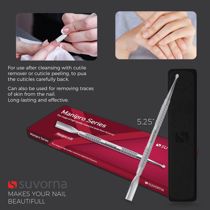 - 5.25 inch Pusher Professionally designed for everyone: Texturized slender improves the grip while using a Cuticle Pusher or fingernail cleaner tool for manicure or pedicure. Suvorna Nail Pusher Tool and Cuticle Eliminator are manufactured so well that anyone can maintain their cuticle health. Nail Polish Remover Tool are made for every demographs that a girl, boy, women, men, or elderly people can use for their nailcare for nail cuticle. So literally our Nail Pusher Cuticle are for everyone.