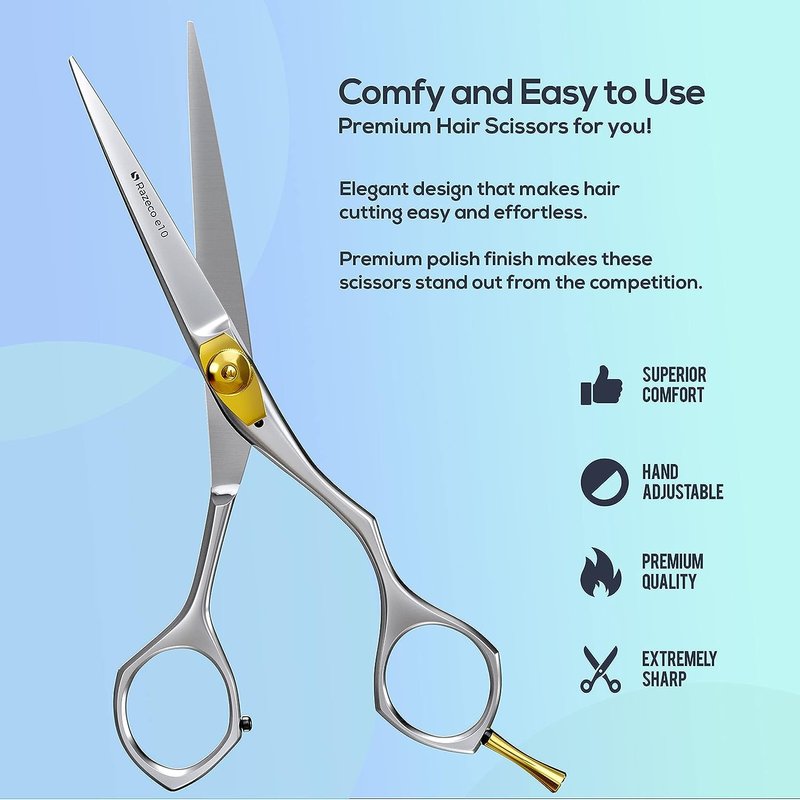 - βοΈ ALL-IN-ONE HAIR SCISSORS: These hair scissors are designed for professionals but also equally entertain home users. Designed to handle all hair textures, from thick to coarse strands or delicate, silky locks with equal ease. whether you're shaping bouncy curls or trimming split ends, shaping bangs or adding layers to long lengths, or defining sideburns. These featherlight & easy-on-hand scissors are perfect for men, women, teenagers, seniors, & even kids β anyone who needs a haircut!