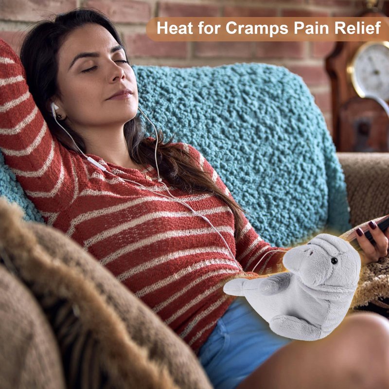 - Ease Monthly Discomfort: Don't suffer alone, when you're facing menstruation, let this microwave stuffed animal period heating pad ease your menstrual pain! Just microwave heating pad for period cramps! Our manatee stuffed toys can turn into a cute plush heating pad, releasing soothing moist heat to promote circulation for menstrual cramp relief, light lavender scent to relax you, which is a good menstrual heating pad stuffed animals for girls and women