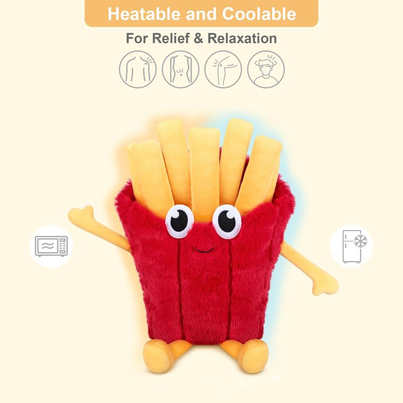 - Stuffed With Love & Relief: SuzziPals french fries cute stuffed animal is made from soft plushy, which can give you a warm & comfortable hug. Not only can it be used as a cute microwavable stuffed animal for heat therapy, but it can also be refrigerated for cooling and pain relief. Children or adults will always feel secured and loved by snuggling with this heatable stuffed animals