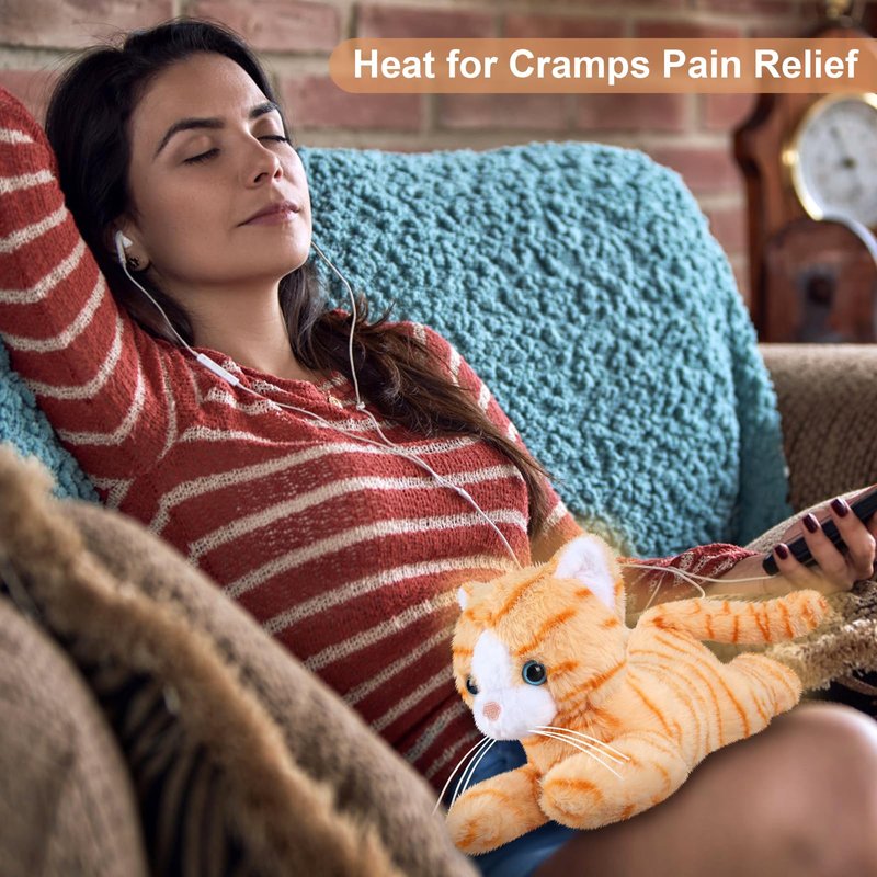 - RELIEVE MENSTRUAL PAIN: When having menstrual pain, heat this kitten stuffed animal heating pad for period cramps! By cuddling up to the toy cat heatable stuffed animals, it delivers up to 20 minutes of deep, moist heat to provide relief for pain in your lower abdomen and all over your body, boosting circulation and easing menstrual cramps, making it great warming heating stuffed animal for cramps for women & girls