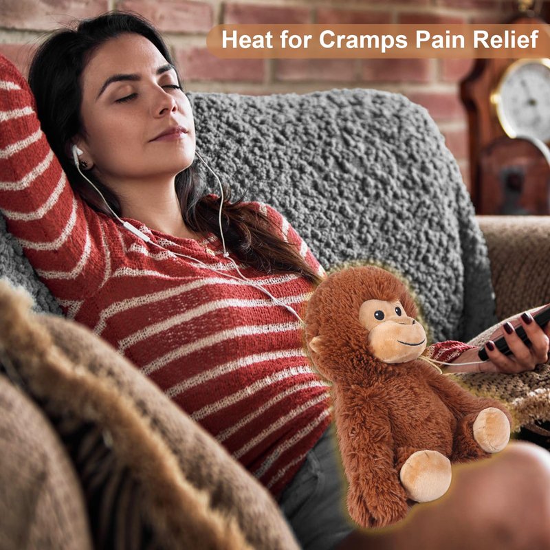- Say Goodbye to Monthly Discomfort: Don't suffer alone, when you're facing menstruation, let lavender scented stuffed animal monkey ease your menstrual pain! Just microwave our monkey plushies! Our monkey stuff animals can turn into a period heating pad for cramps, release soothing moist heat to promote circulation and ease period cramps, which is a perfect first period gifts for girls.