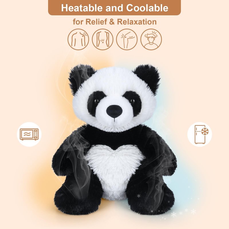 - Stuffed with Love & Health: The cute stuffed animal panda bears is crafted with attention to detail, made from high-quality plush materials and well stitching, our panda plush toys is not only sturdy but also a heatable & coolable microwavable heating pad animal plushie that help you to get down stress and chronic pain! Sure you'll feel secure and love by hugging this panda bear stuffed animal