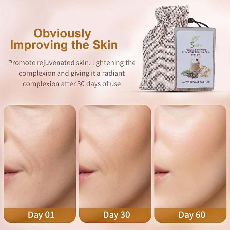 SVATV Coffee Oats Rice Flour Soap Handmade Natural Bar Soap for Men & Women, Moisturizing Body & Face Soap, 125g x 2