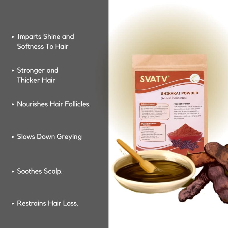- SOOTHES SCALP :: Paired with potent anti-inflammatory , SVATV shikakai Powder provides a soothing and calming solution for the infected scalp. By maintaining the optimum pH level of the scalp, it restores the health of the hair and provides an infection-free scalp for proper hair growth.