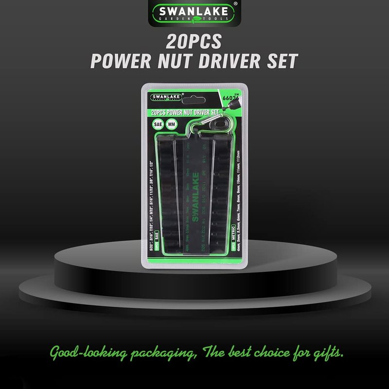 SWANLAKE 20PCS Power Nut Driver Set for Impact Drill, 1/4” Hex Head Drill Bit Set SAE and Metric