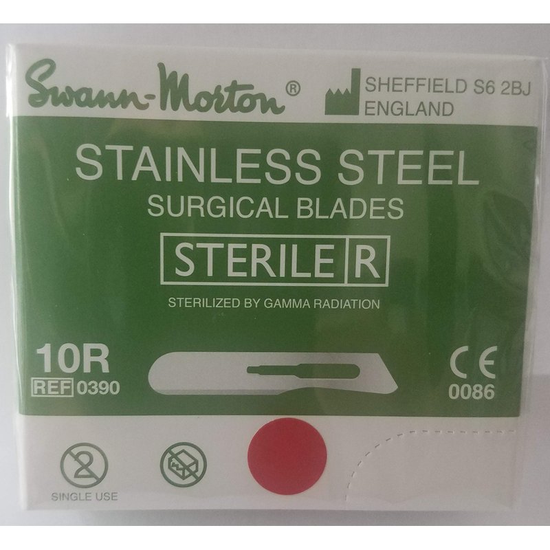Swann-Morton #10R Sterile Surgical Blades, Stainless Steel [individually packed, box of 100]