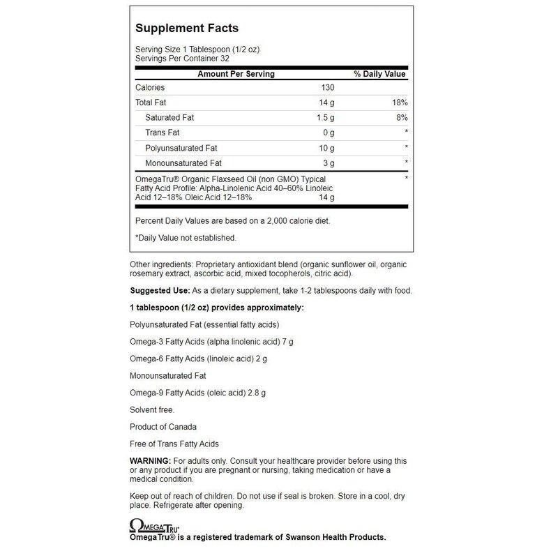 Swanson Flaxseed Oil (Omegatru) 16 fl Ounce (1 pt) (473 ml) Liquid