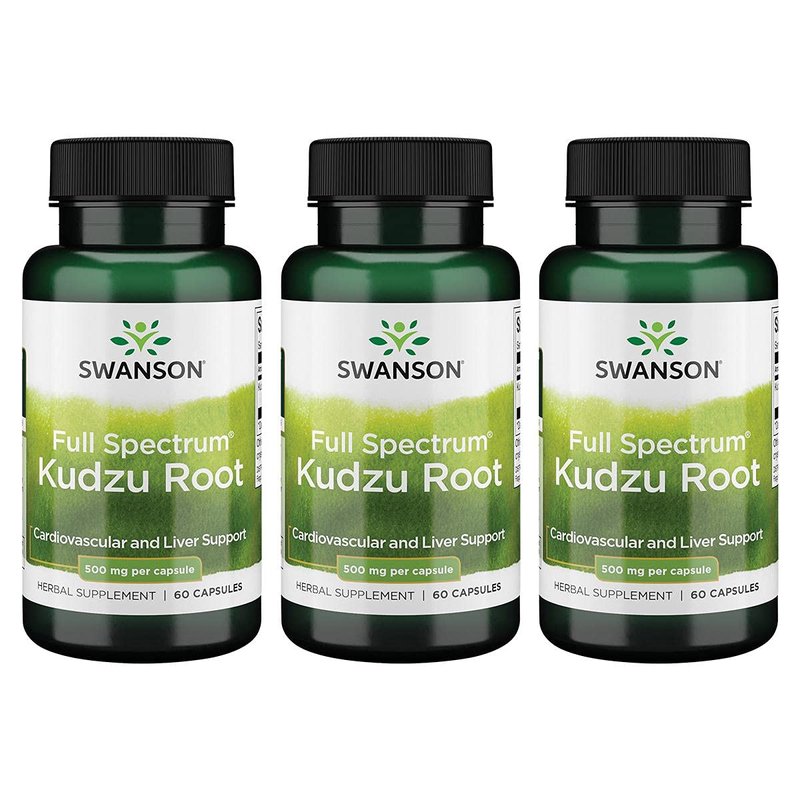 Swanson Full Spectrum Kudzu Root - Herbal Supplement Supporting Heart Health & Liver Health - May Support Healthy Blood Pressure & Cholesterol Levels - (60 Capsules, 500mg Each) 3 Pack